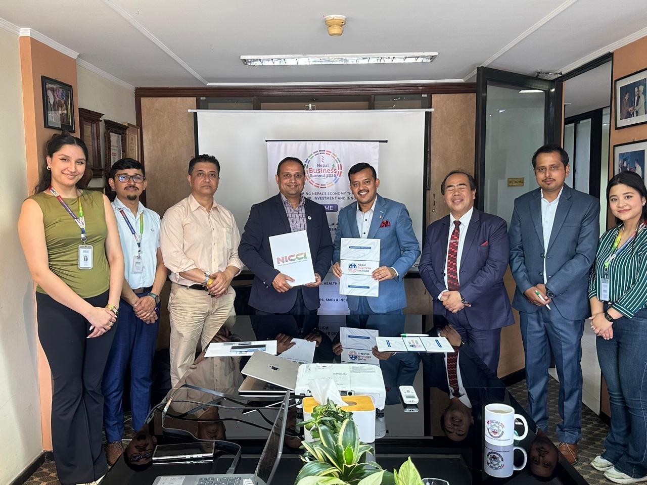 KATHMANDU, April 29, 2026 — The Nepal–India Chamber of Commerce & Industry (NICCI) and the Nepal Business Institute (NBI) have signed a Memorandum of Understanding (MoU) to collaborate on the organization of the Nepal Business Summit 2026 to be held on 18th May 2026.